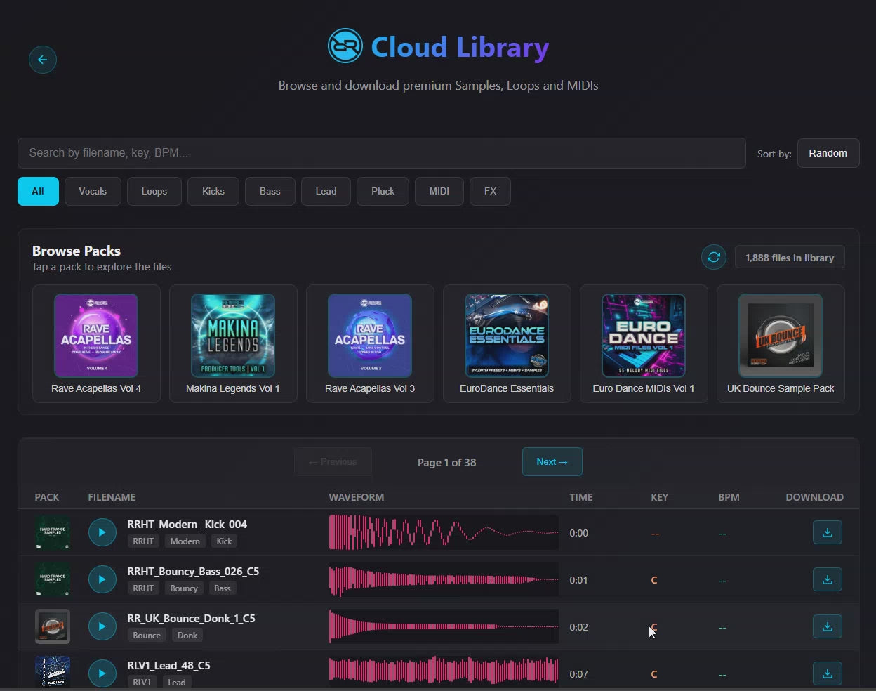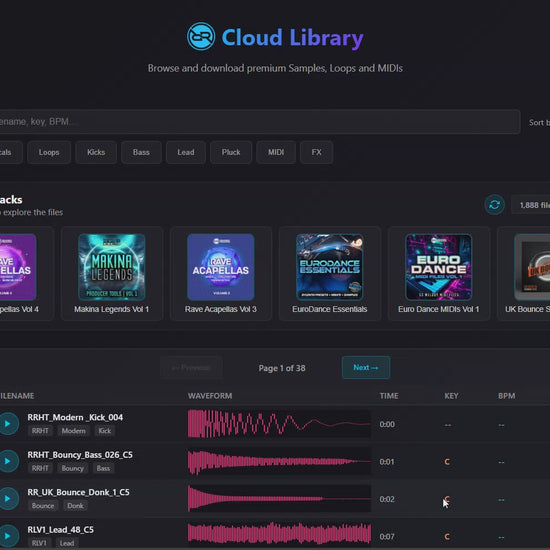 We've just launched our Cloud Audio Library where you can browse and preview thousands of Samples, Loops and MIDIs for instant inspiration, and download what you want, when you want - with no download limits. You can search for exactly what you want - Kicks, Vocals, MIDI etc, browse by pack or tags, or just scroll through the list and see what inspires you :D
